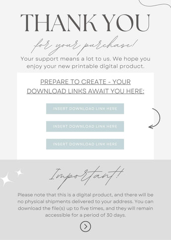 As soon as you complete your purchase, you'll receive a PDF document containing a shareable link, granting you immediate access to your templates through your Canva account – it's that simple!