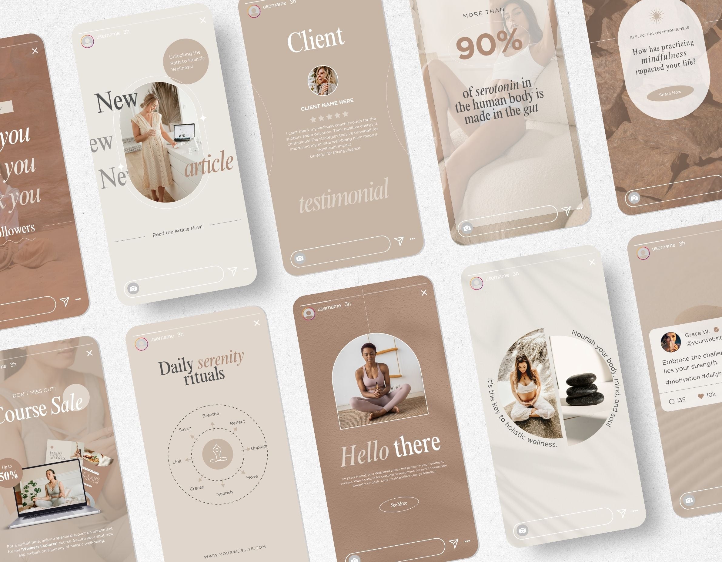Create a warm and refined Instagram presence with our Wellness Instagram Templates Bundle Kit, crafted for wellness coaches, holistic practitioners, creators, and lifestyle brands who want a gentle beige aesthetic for their content.