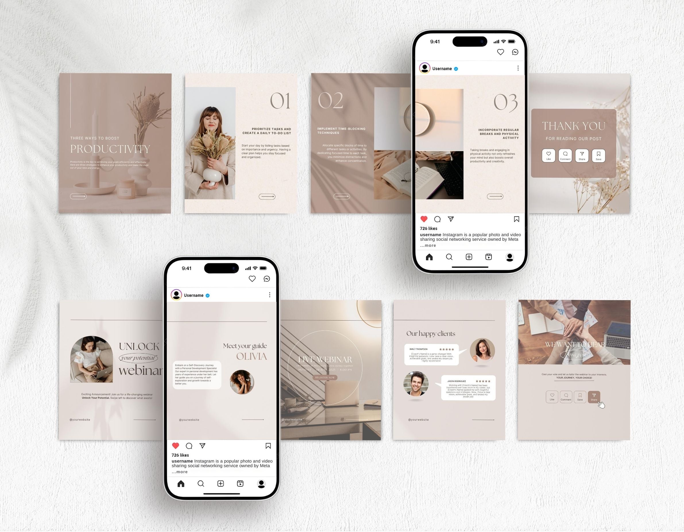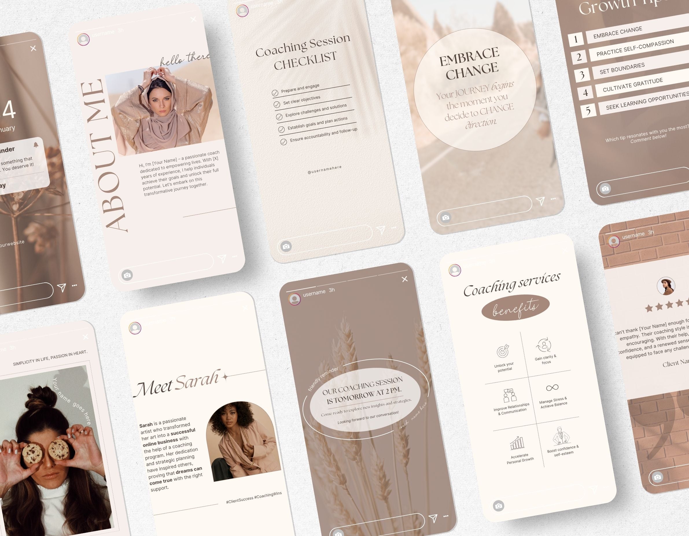 Build a warm, professional online presence with our Coach Instagram Templates Bundle Kit, created for business coaches, life coaches, mentors, content creators, and service-based entrepreneurs who want a soft, neutral aesthetic that feels calm, modern, and trustworthy.