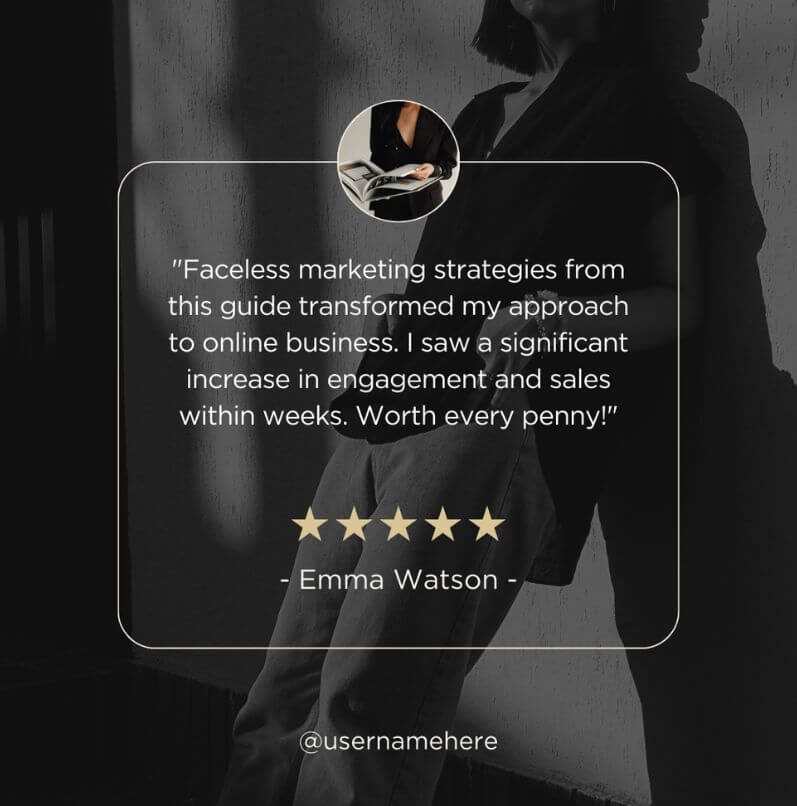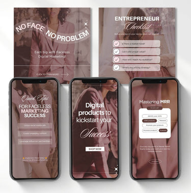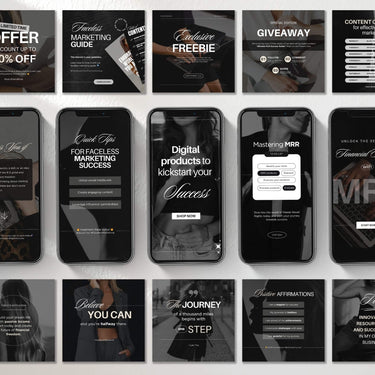 Take your faceless Instagram marketing to the next level with our comprehensive Faceless Instagram Templates Bundle. It includes faceless Instagram posts, perfectly matched stories, captivating carousel posts, stylish quotes, and sleek highlight covers. Tailored for digital product entrepreneurs, these templates allow you to present your offerings in a polished, professional manner without the need for personal photos.
