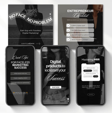 Simplify your social media branding efforts with our bundle of pre-designed Faceless Templates, including posts, stories, carousels, quotes, and highlight covers. Ideal for faceless marketing and digital product sales, this comprehensive collection helps you build a cohesive brand and captivate your audience. With Master Resell Rights (MRR), you can tailor or resell these high-quality templates for profit—no design skills necessary!