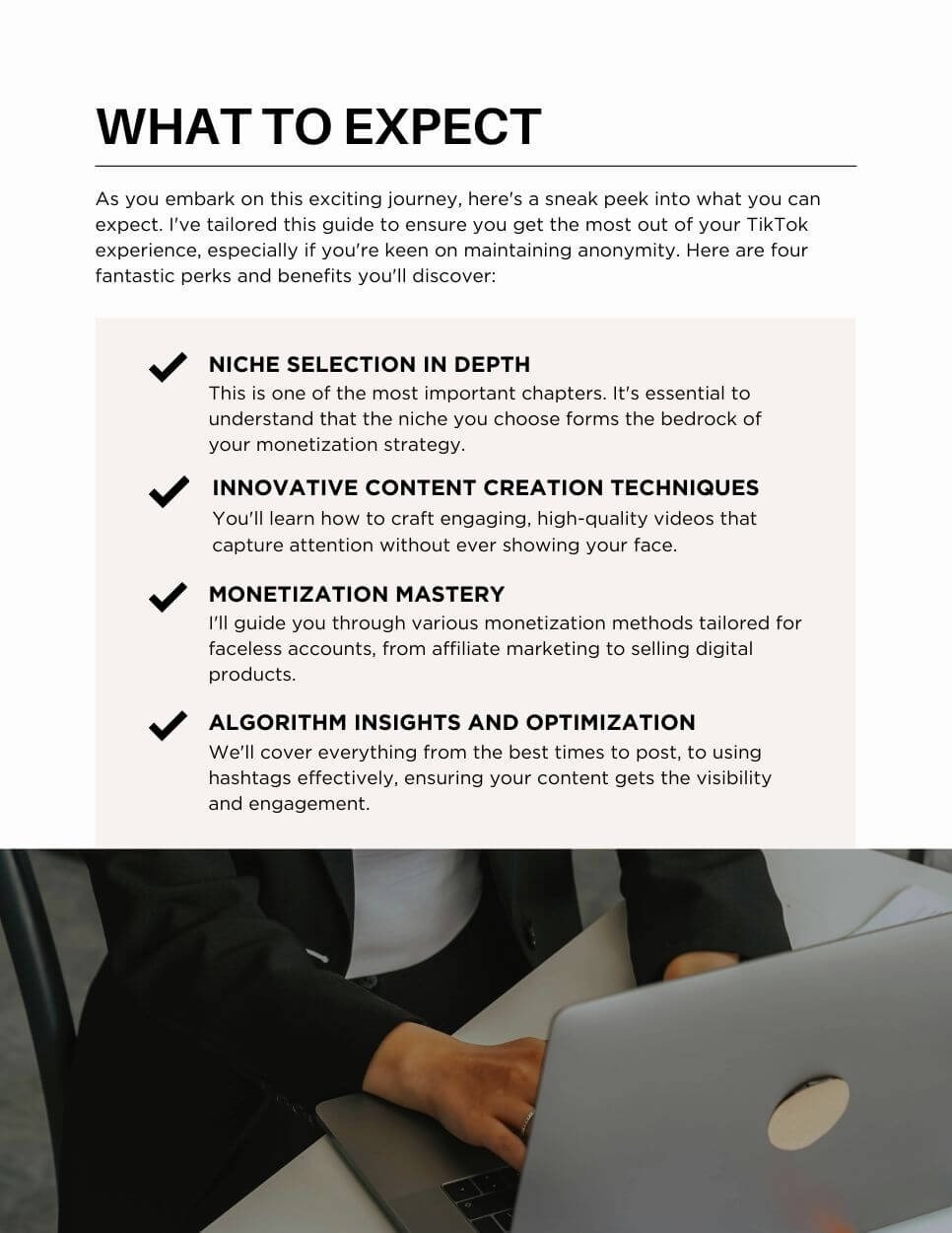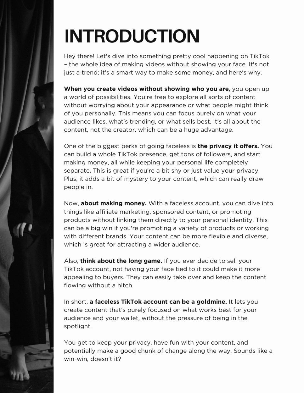 Benefit doubly by mastering faceless TikTok strategies and then reselling this guide to others. Profit from both your knowledge and sales.