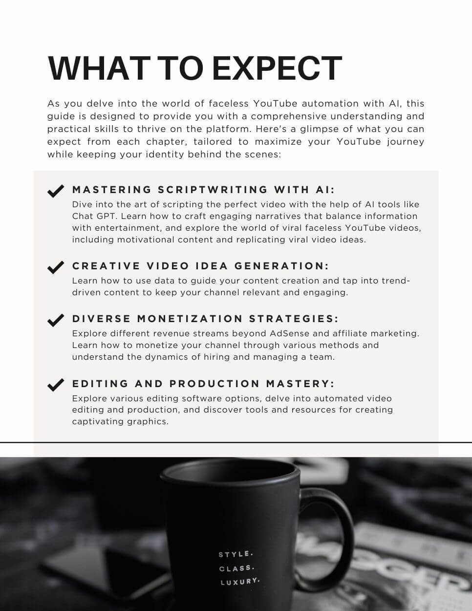 ✔️ Bonus inclusion: The YouTube Automation Checklist ensures you're equipped with the tools and tactics necessary for efficient channel management and growth.